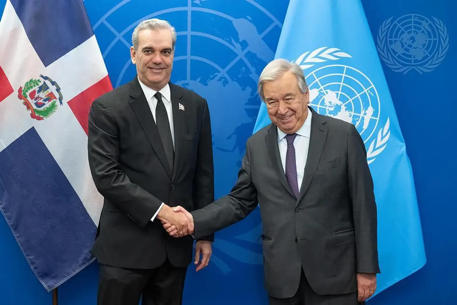 Nueva York. – El presidente Luis Abinader, durante un encuentro privado con el secretario general de las Naciones Unidas, Antonio Guterres, le reiteró su solicitud de redoblar los esfuerzos para el despliegue de una misión de seguridad en Haití, que estaría liderada por Kenia.