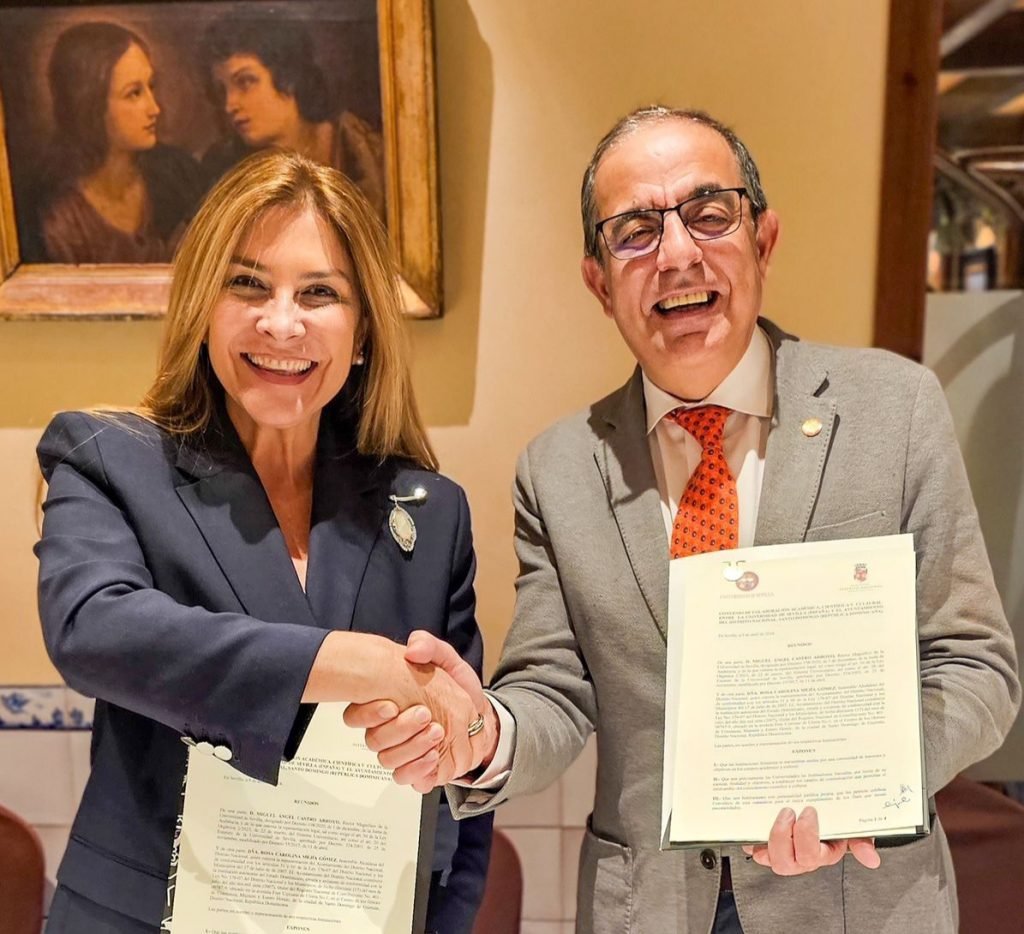 Sevilla, España.- En una muestra de compromiso con el desarrollo académico y cultural, la alcaldesa del Distrito Nacional, Carolina Mejía y el rector de la Universidad de Sevilla, Miguel Ángel Castro Arroyo, firmaron un acuerdo marco de colaboración con el que se fortalecerá la cooperación mutua en áreas claves como el desarrollo urbano sostenible, la preservación del patrimonio cultural y la promoción de la educación como motor de transformación social.