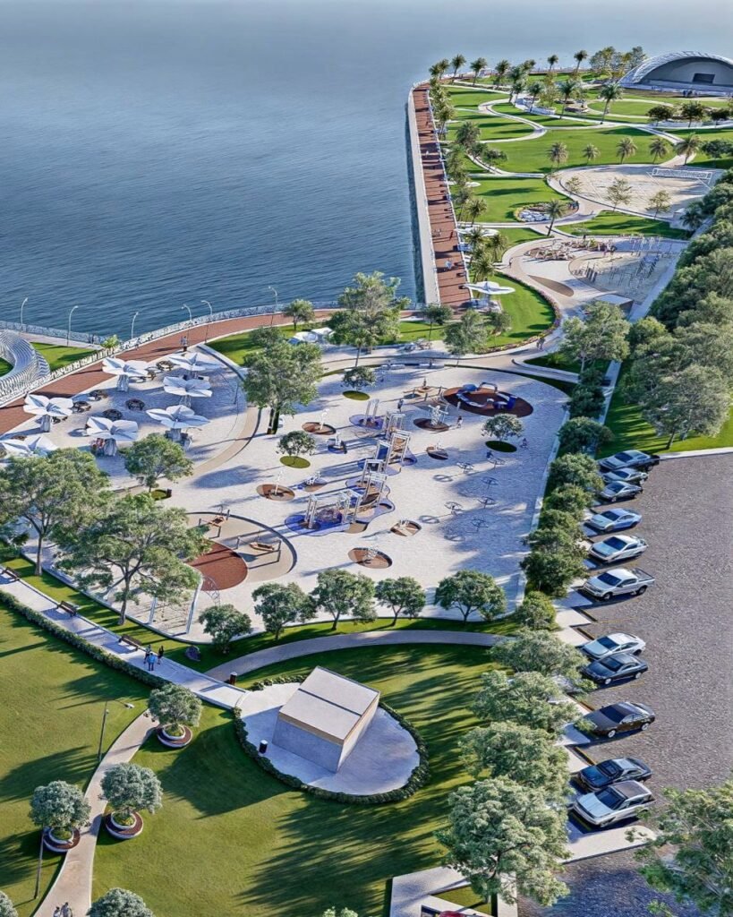 El Malecón Deportivo contará con más de 50,000 m² de áreas verdes, espacios recreativos y de encuentro, circuitos para caminantes y ciclistas. Además, un edificio de parqueos estará ubicado al frente.