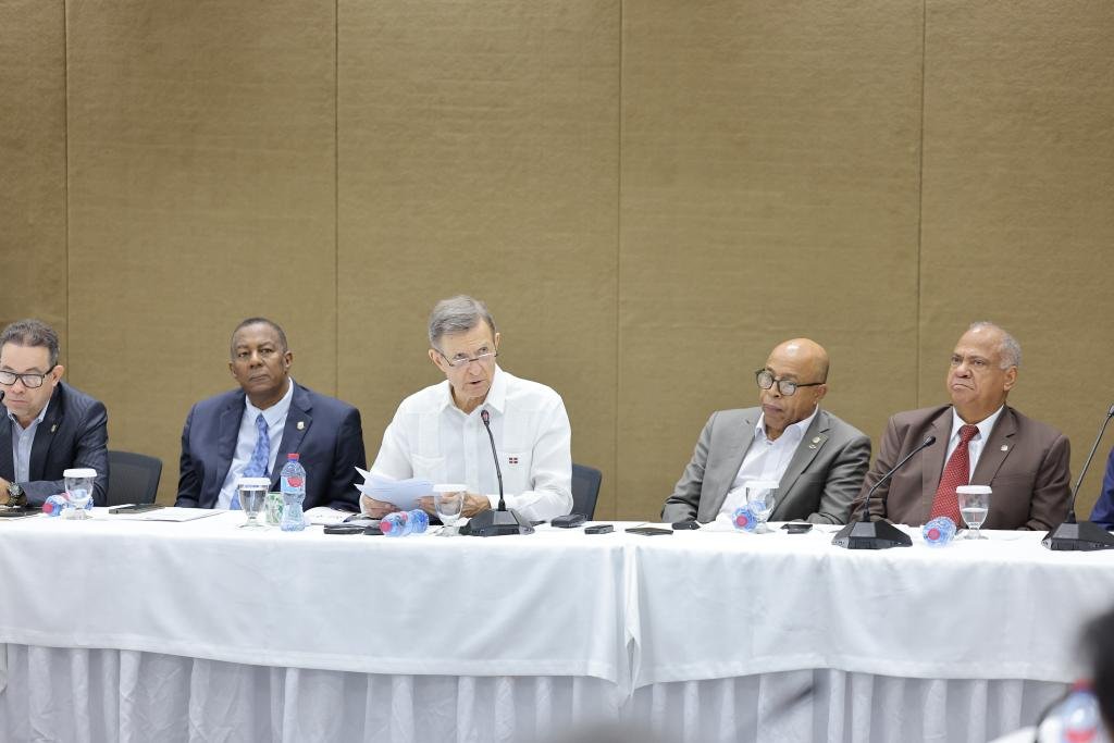El canciller estuvo acompañado de los viceministros de Política Exterior Multilateral, José Julio Gómez; de Política Exterior Multilateral, Rubén Silié; así como del embajador dominicano en Haití, Faruk Miguel; el director de Estudio y Análisis Estratégicos del Ministerio de Relaciones Exteriores, Anselmo Muñiz, y el director Jurídico, Boni Guerrero.