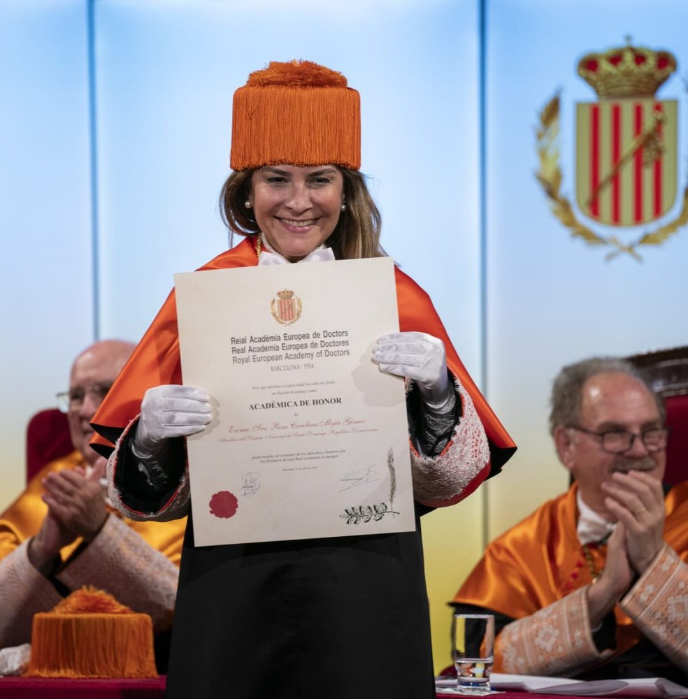 Barcelona, España.- La alcaldesa Carolina Mejía fue investida este lunes como Académica de Honor en la Real Academia Europea de Doctores (RAED), por su ejemplo de liderazgo positivo en el servicio público y bienestar social.