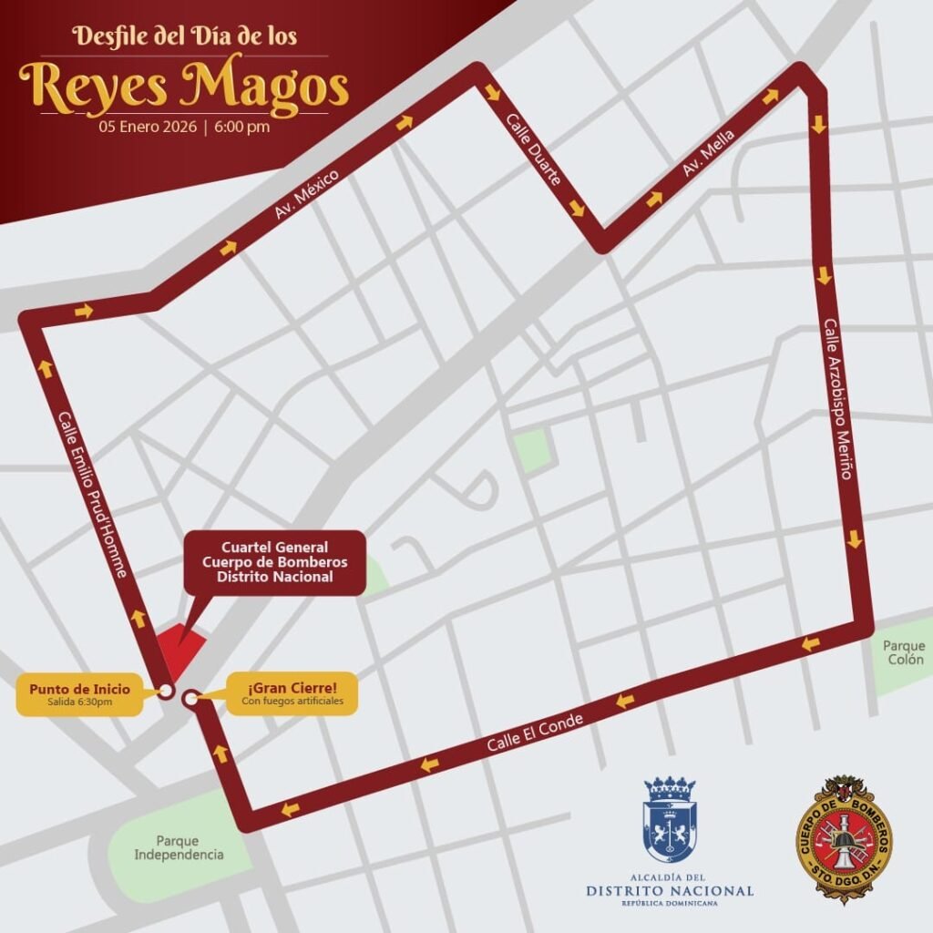 Un mapa colgado en las redes sociales de ambas instituciones indica que el recorrido inicia en la calle Emilio Prud´Homme, luego la avenida México, la Juan Pablo Duarte, la calle Arzobispo Meriño hasta tomar la calle El Conde y retornar al cuartel.