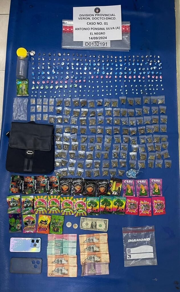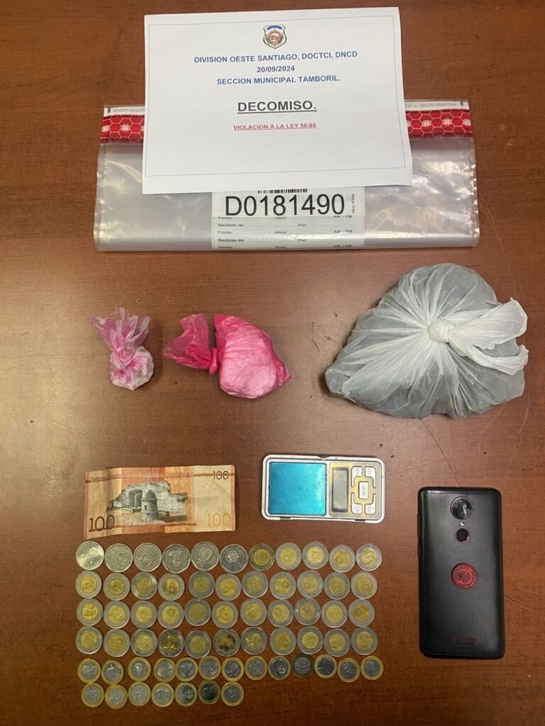 Se ocuparon además 04 armas de fuego, 30 cuchillos y machetes, 04 vehículos, 39 motocicletas, 267 celulares, 20 radios de comunicación, 01 chaleco antibalas, 91 balanzas, 01 máquina tragamonedas, RD$ 498,573 pesos dominicanos, US $ 2,717 dólares estadounidenses y demás evidencias.