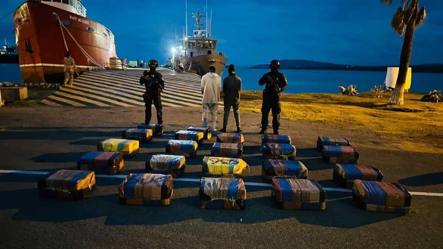En una segunda operación, desplegada a varias millas náuticas al sureste de Santo Domingo, las unidades de reacción avistaron una embarcación de 21 pies de eslora, activando de inmediato labores operativas, logrando interceptarla con dos hombres a bordo y 20 pacas, con un total de 638 paquetes.