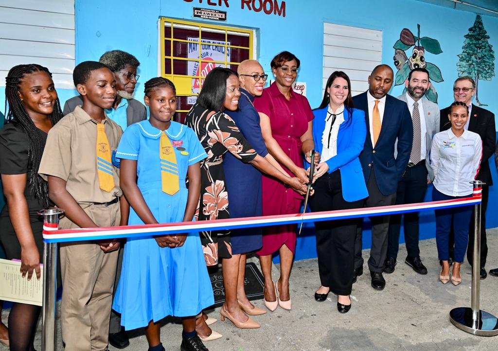 Kingston, Jamaica. – La Embajada de la República Dominicana en Jamaica concluyó sus actividades del 2023 con un significativo gesto que tocó a la sociedad jamaicana, la entrega a la Escuela Primaria Clan Carthy, de un aula de informática equipada con 15 computadoras de última generación, 30 nuevas sillas modernas y coloridas, una impresora-escáner multifuncional, una nueva unidad de aire acondicionado, así como computadoras adicionales para la biblioteca, la sala de profesores y el personal administrativo del plantel escolar adoptado en el marco del Programa de Adopción de Escuelas Públicas de la Embajada. El evento despertó gran interés de la prensa nacional, quien cubrió y difundió ampliamente esta emotiva ceremonia, que tocó los corazones de cientos de miles personas en todo el territorio jamaicano. El acto de donación fue encabezado por la Embajadora Dominicana en Jamaica, Angie Martínez; la Presidenta de la Cámara de Representantes y Primera Dama de la Nación, la Honorable Juliet Holness; la Ministra de Educación de Jamaica, la Honorable Fayval Williams; el Congresista Julian Robinson; el Vicepresidente de la Junta Directiva, Dr. Mortimer Mullings; y la Directora de la escuela, Sra. Winsome Reid. Asimismo, contó con la presencia de estudiantes, padres, profesores y personal administrativo de la institución, quienes fueron testigos del significativo acto.
