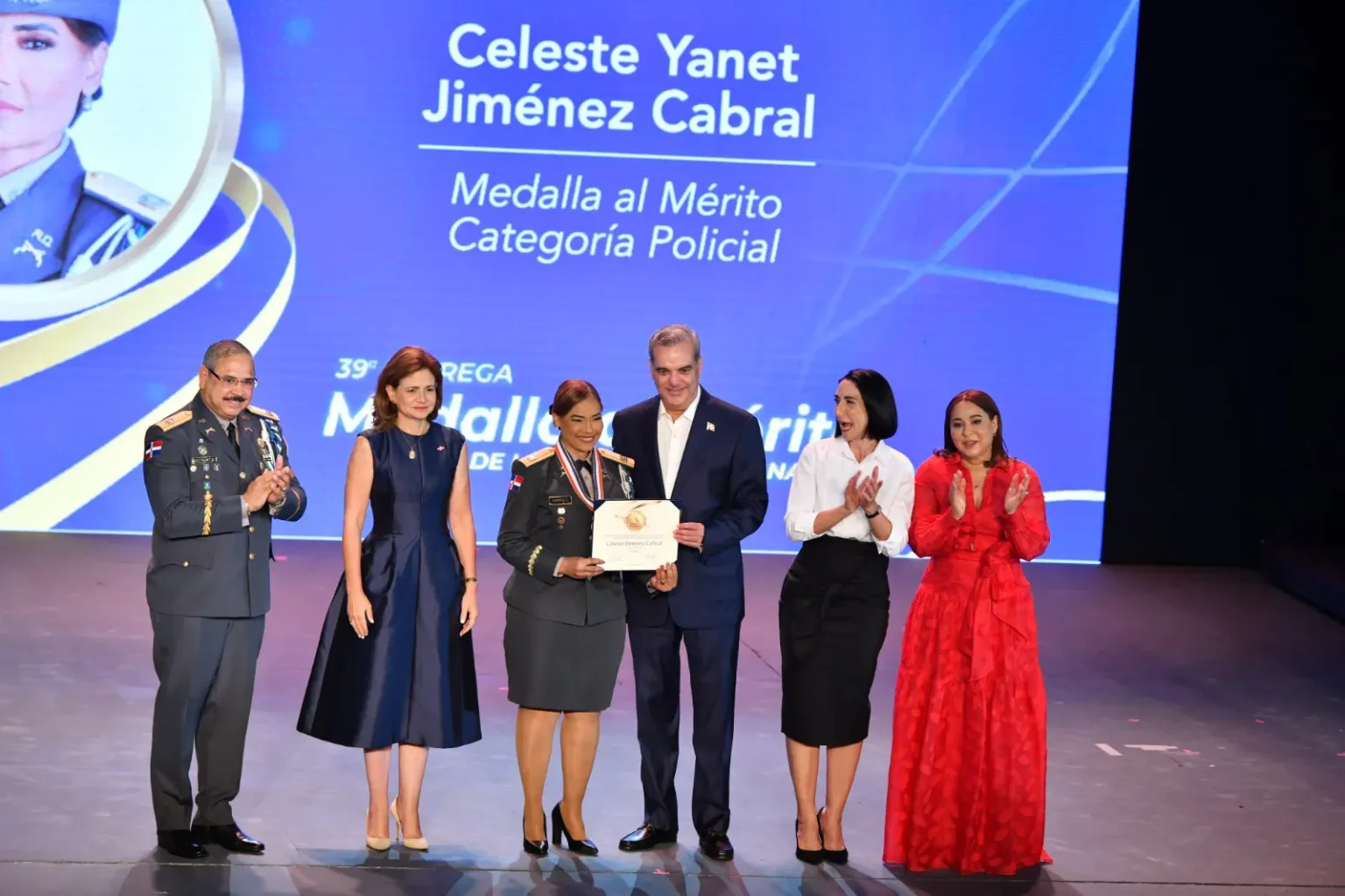 Durante un acto solemne, llevado a cabo en el Salón Máximo Avilés Blonda, del Palacio de Bellas Artes, recibieron la Medalla al Mérito 2024 a Antonia Antón Espinal en la categoría Trayectoria en el Sector Financiero; Petronila Castillo en la categoría Participación Política; Raquel Corona Peña, como Destacada en el Extranjero; Sonia Argentina Inoa en la categoría Profesional; Santa Cesarina Fabián Medina en la categoría Social; Dinanyiris Fúrcal Hernández en la categoría Deportes.