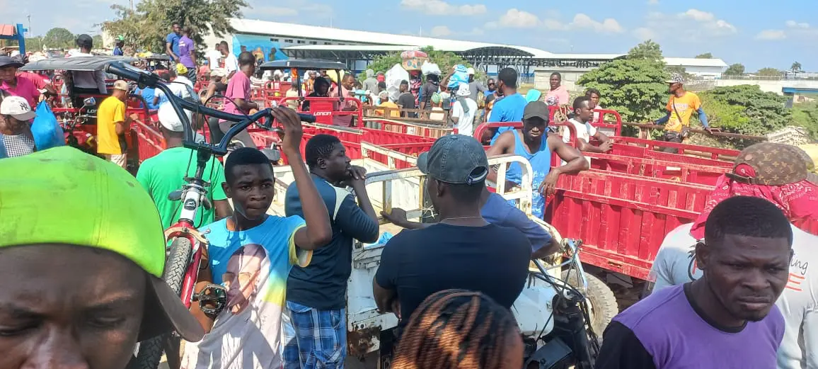 Dajabón, RD.- Haitianos que conducen motores de carga de tres gomas bloquearon momentáneamente el paso fronterizo por Dajabón para exigir la salida fuera del área comercial donde se celebra un premercado este jueves.