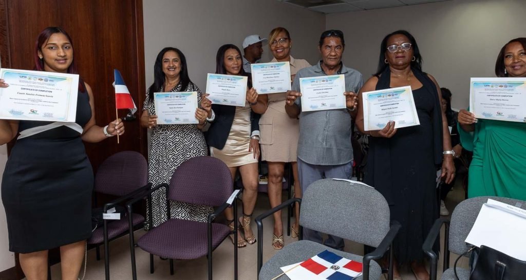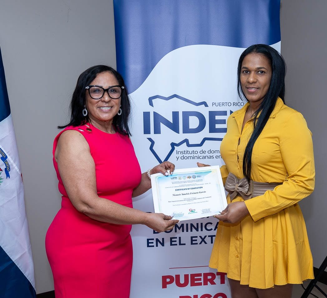» Les felicito a todas para nosotros como institución nos llena de regocijo verlas graduarse de este curso, somos una institución para brindarles servicios a la comunidad dominicana en Puerto Rico, felicito por este nuevo logro, esperando que continúen especializándose en las áreas donde ustedes laboran, ahora con los conocimientos apropiados y certificadas hoy en Puerto Rico, felicidades a todas, expresó.