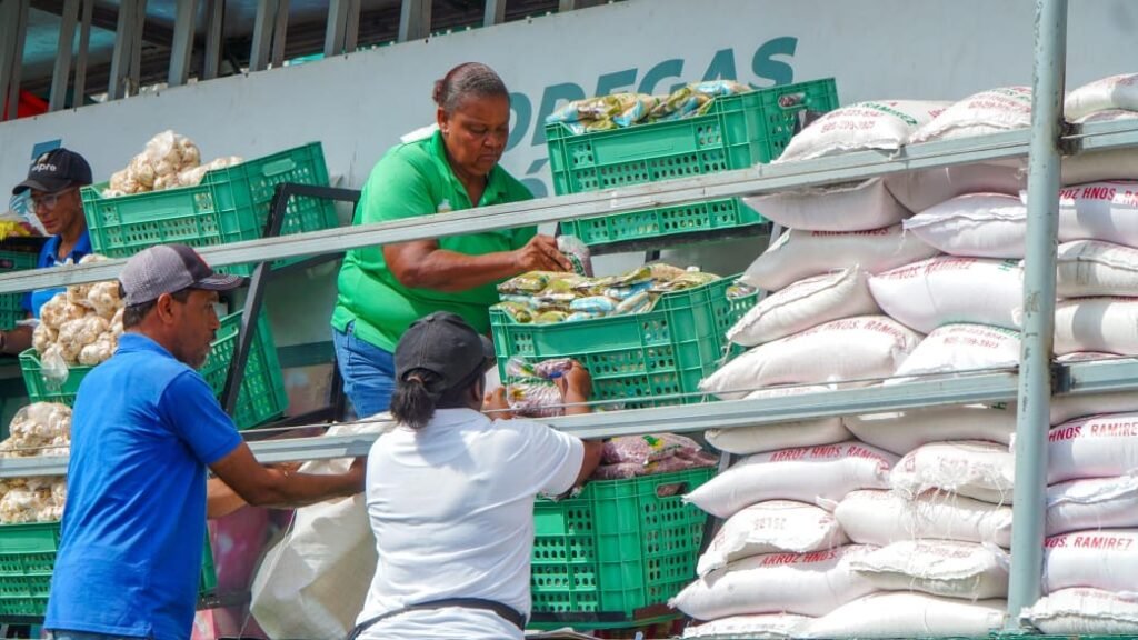 Agregó que también se ofrecieron sardinas Dimar a 70 pesos, leche de coco a 60, 400 gramos de habichuelas a 50 pesos, medio galón de aceite a 275, pollos enteros a 200 pesos, plátanos a 3 pesos la unidad, orégano molido en fundas a 45 pesos, así como una gran variedad de quesos y embutidos.