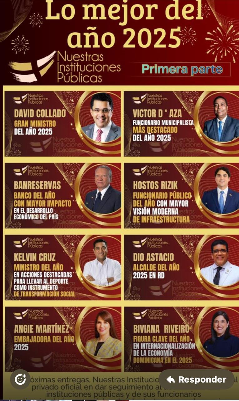 Santo Domingo, RD.-Por tercer año consecutivo, el portal especializado en informar y analizar las acciones de las instituciones públicas y de sus funcionarios ha publicado su reconocimiento a lo mejor del año 2025.