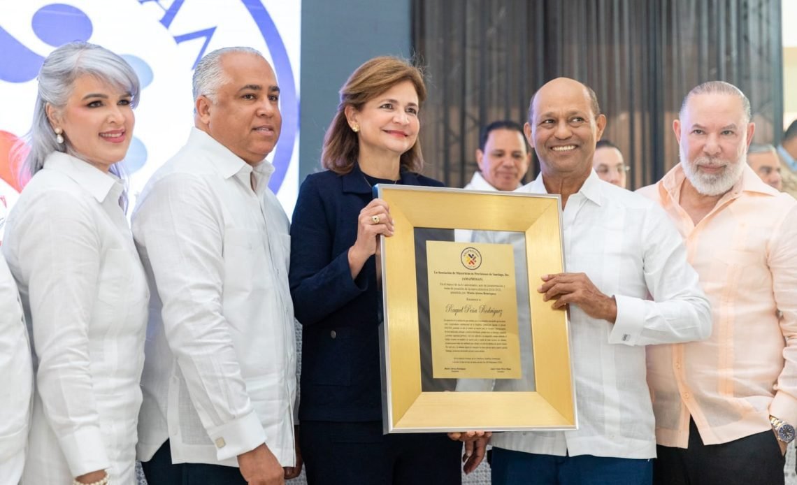 “La asociación de Mayoristas en Provisiones de Santiago, pues quiere rendirle un tributo a ese trabajo arduo que ha venido desarrollando a través de su gestión, y en expresión de la satisfacción que sentimos por el excelentísimo desempeño que ha tenido como vicepresidenta constitucional de la República Dominicana durante el periodo 2020 2024”.