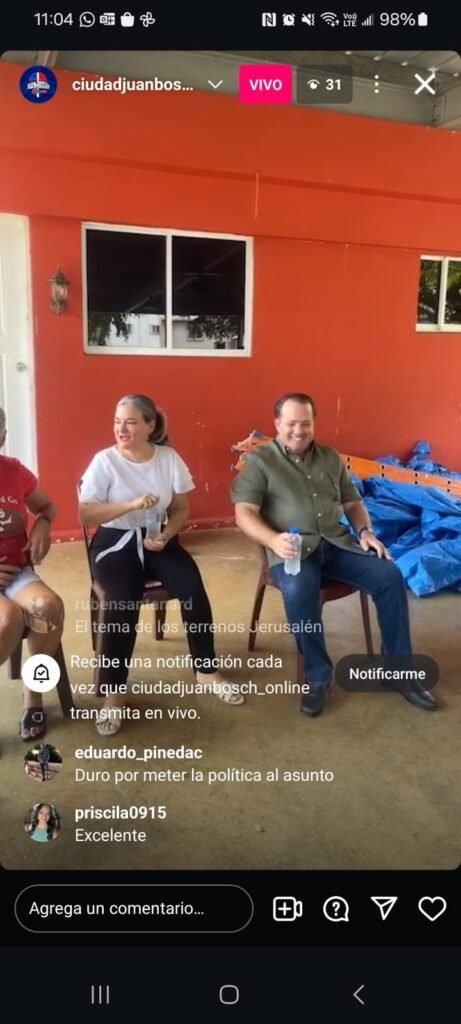 El funcionario dijo a los munícipes que el lunes estará solicitando la presencia de los directores de la CAASD y del Fideicomiso CJB para q se trasladen al lugar y hagan los levantamientos correspondientes, para poder dar solución a esas demandas.