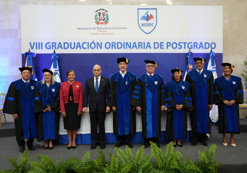 Santo Domingo, RD.-El Instituto de Educación Superior en Formación Diplomática y Consular (INESDYC), órgano académico del Ministerio de Relaciones Exteriores (MIREX), celebró su “Octava Graduación Ordinaria de Postgrado”, en la cual se graduaron 43 nuevos profesionales, 21 maestrantes en Diplomacia y Servicio Consular y 22 Especialistas en Diplomacia Comercial.