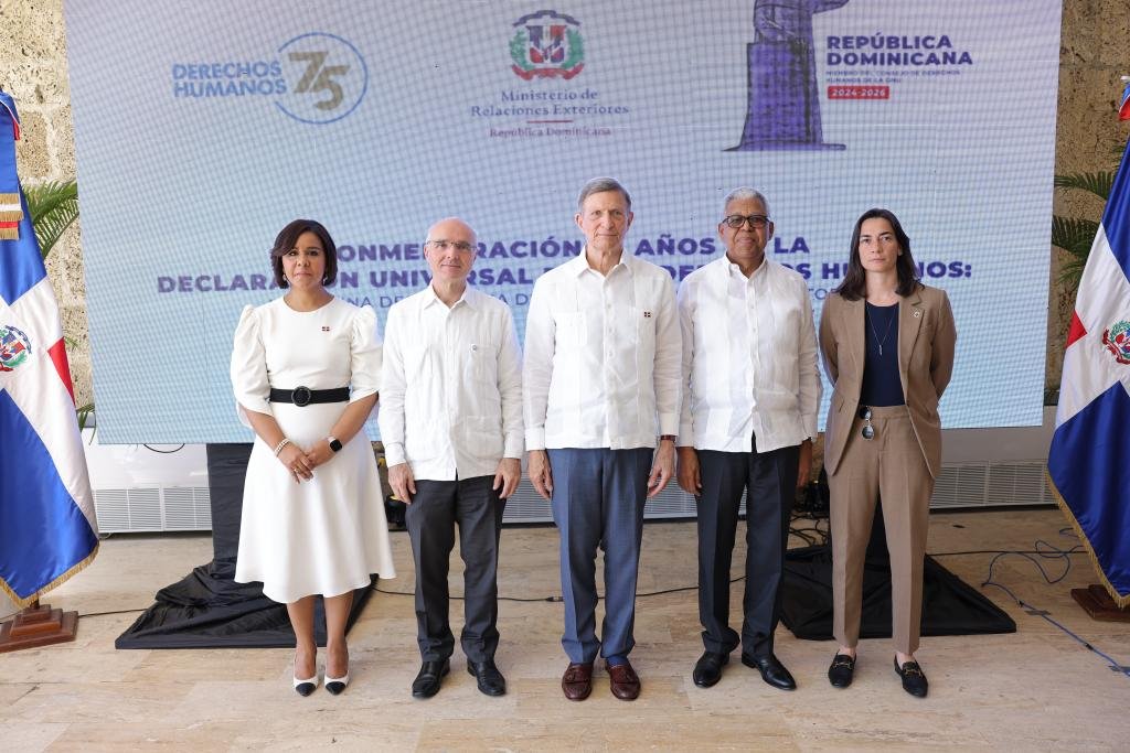 El evento que también sirvió para conmemorar el 75 aniversario de la Declaración Universal de los Derechos Humanos, Roberto Álvarez agregó que, como nación, “aceptamos con humildad y respeto nuestro papel histórico en la defensa de la dignidad humana, reconocemos la responsabilidad de abordar desafíos contemporáneos como la desigualdad, discriminación, cambio climático, emergencias de salud, terrorismo, intolerancia y conflictos armados, a los que, comprometidos con la promoción de soluciones pacíficas, nos esforzamos por abogar en espacios multilaterales hacia el desarrollo social y democrático de las comunidades.”