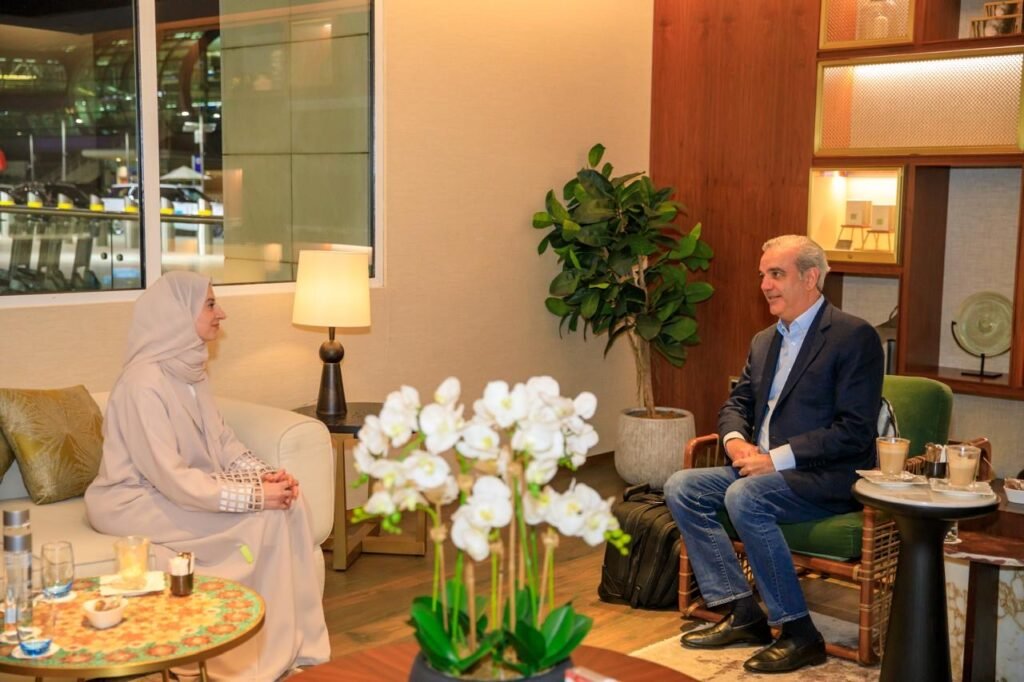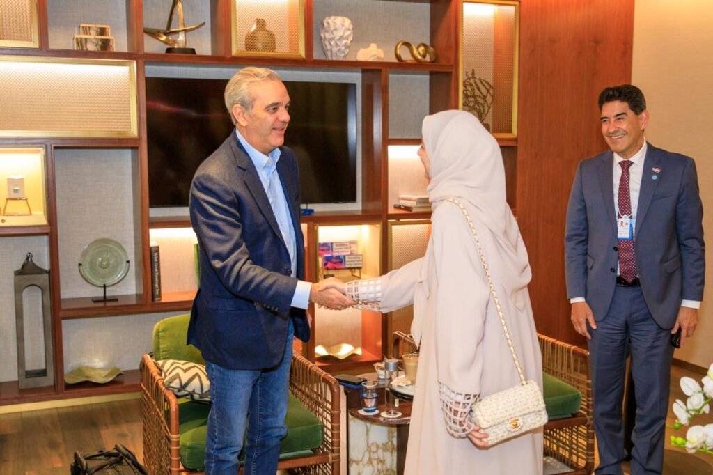 A su llegada, el mandatario dominicano fue recibido por Su Excelencia Huda Al Hashimi, ministra del Gobierno de los EAU y de Gabinete para Asuntos Estratégicos y el embajador de la República Dominicana ante los Emiratos Árabes Unidos, Renso Antonio Herrera Franco.