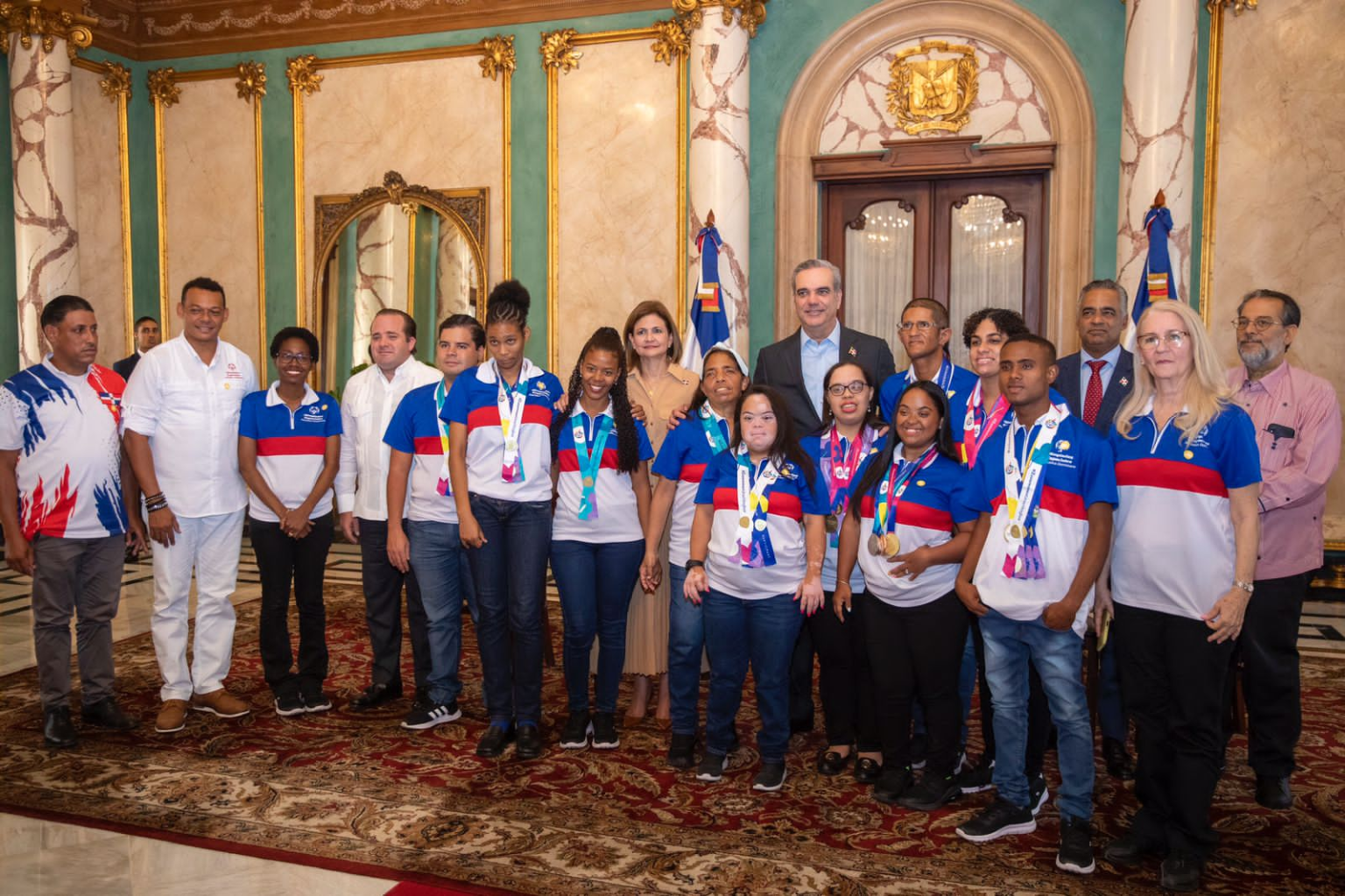 Santo Domingo.- El presiente Luis Abinader recibió la tarde de este lunes la delegación de atletas dominicanos que participó en los Juegos Mundiales de Olimpiadas Especiales 2023 celebrados en Berlín, Alemania.