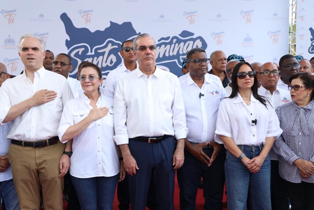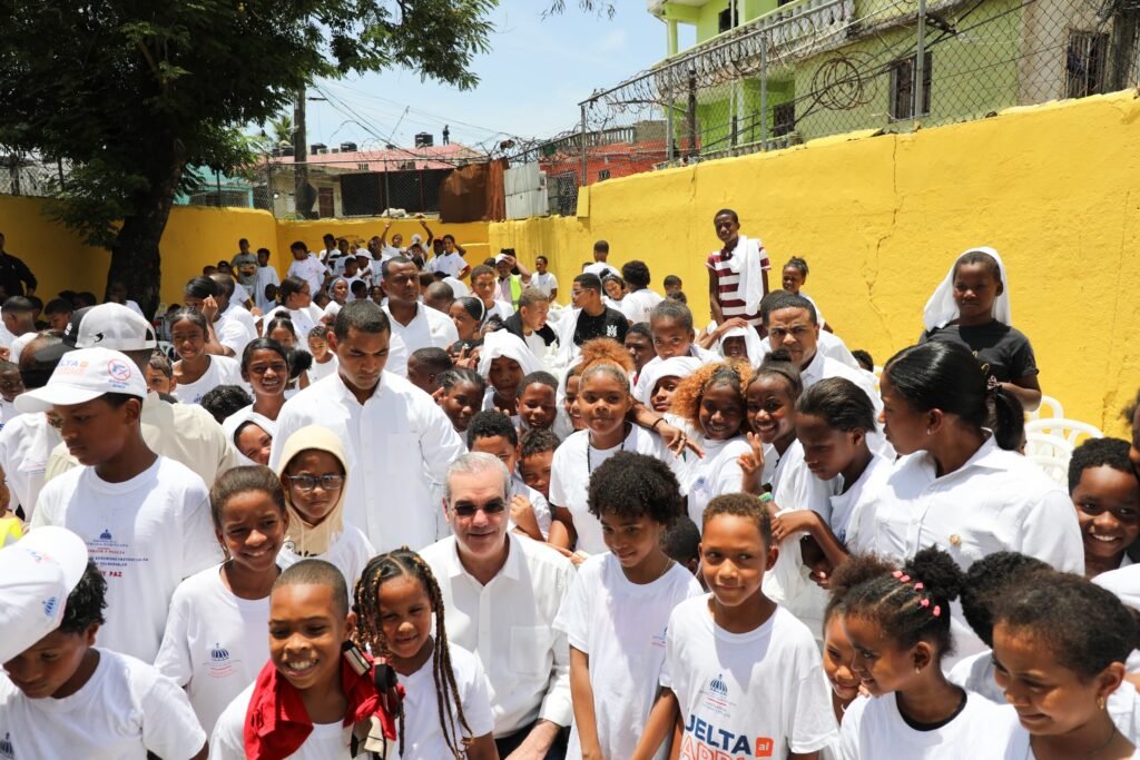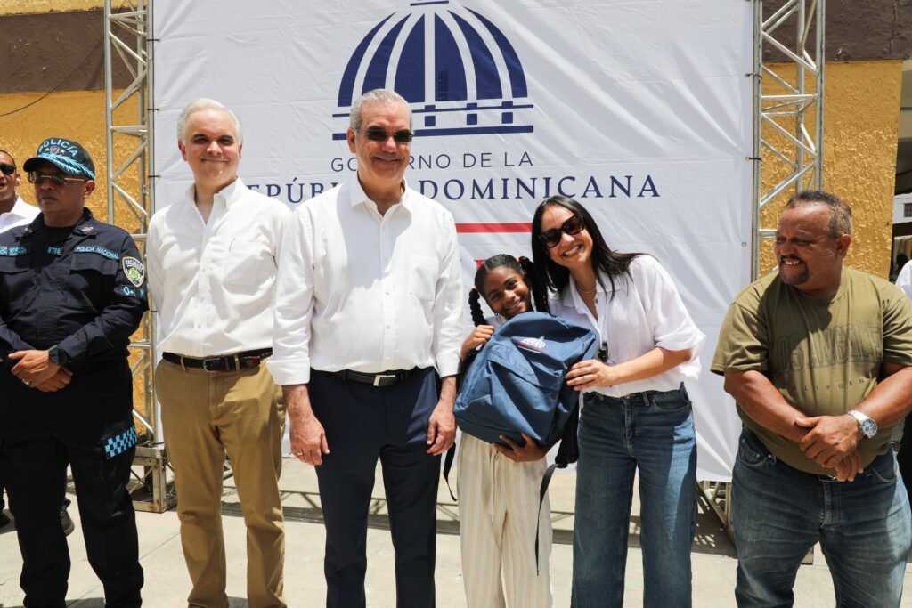 Luego, el mandatario, acompañado por la ministra de Interior y Policía, Faride Raful, y el director de la Policía Nacional, mayor general Ramón Antonio Guzmán Peralta, encabezó la entrega de 500 lámparas para el alumbrado público, 500 mochilas escolares y 18 canchas móviles, con el objetivo de reforzar la iluminación, la educación y la recreación en la comunidad.