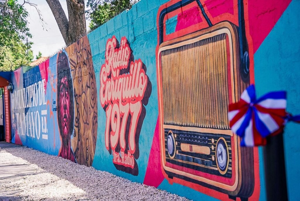 Mientras que en Tamayo, el Paseo de los Colores se desarrolló en dos puntos icónicos: la antigua Radio Enriquillo, en la calle Anacaona, y un parador artístico en la autopista Duarte. El mural principal, de 250 metros cuadrados, rinde homenaje a grandes figuras culturales como Cheo Zorrilla y Benny Sadel, íconos de la música dominicana cuyas composiciones marcaron una época.