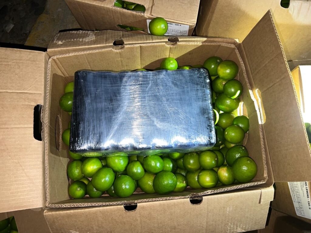 Posteriormente, por instrucciones del Ministerio Público, se procedió a intervenir uno de los contenedores, cargado de limones, detectando 29 cajas contaminadas, conteniendo en su interior los 201 paquetes de la sustancia.