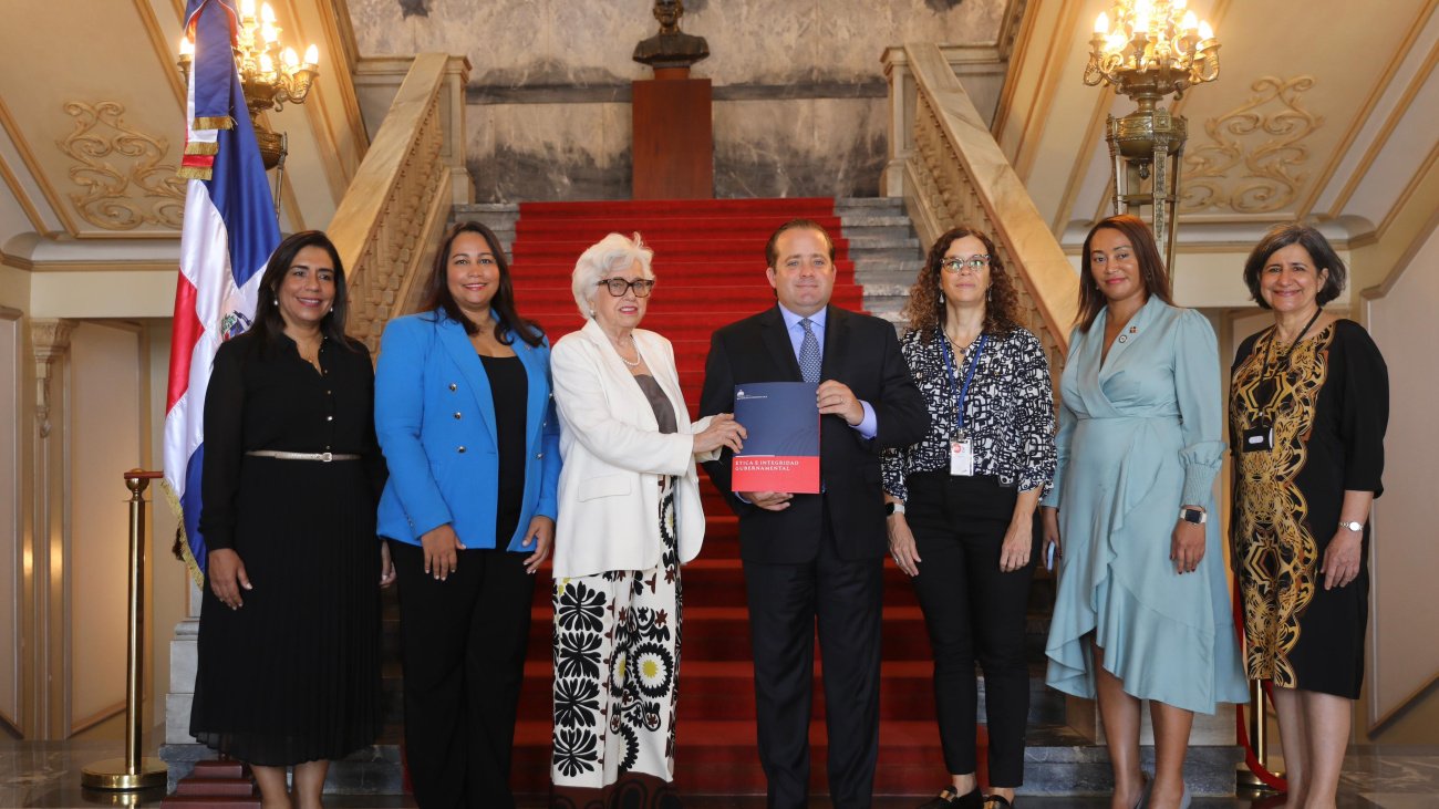 Santo Domingo, RD. – La directora ejecutiva de Ética e Integridad Gubernamental (DIGEIG), doctora Milagros Ortiz Bosch, hizo entrega este martes al ministro administrativo de la Presidencia, José Ignacio Paliza, de un informe de la Cuadragésima Reunión del Comité de Expertos MESICIC, donde fue aprobado el cumplimiento de República Dominicana en cuanto al artículo XVI de la Convención Interamericana contra la Corrupción.