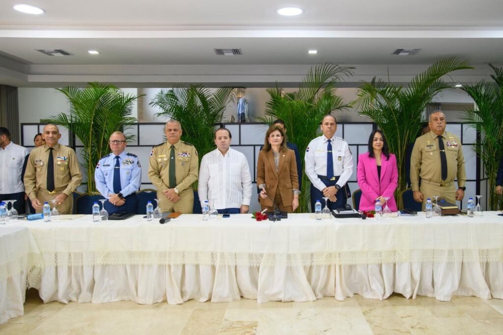 A la vicepresidenta le acompañaron la ministra de Interior y Policía, Faride Raful; el ministro de la Presidencia, José Ignacio Paliza; el ministro de Defensa, teniente general Carlos Antonio Fernández Onofre; y el director general de la Policía Nacional, mayor general Andrés Modesto Cruz Cruz, quien participó por primera vez de manera presencial en estas reuniones desde su designación en el cargo.