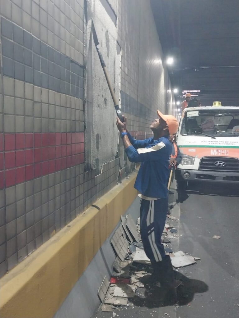 Santo Domingo, RD.- El Ministerio de Obras Públicas y Comunicaciones (MOPC) informó este martes que se produjo un desprendimiento parcial de la cerámica decorativa que cubre de uno de los laterales del túnel de la 27 de Febrero, entre las avenidas Winston Churchill y Abraham Lincoln, Distrito Nacional.