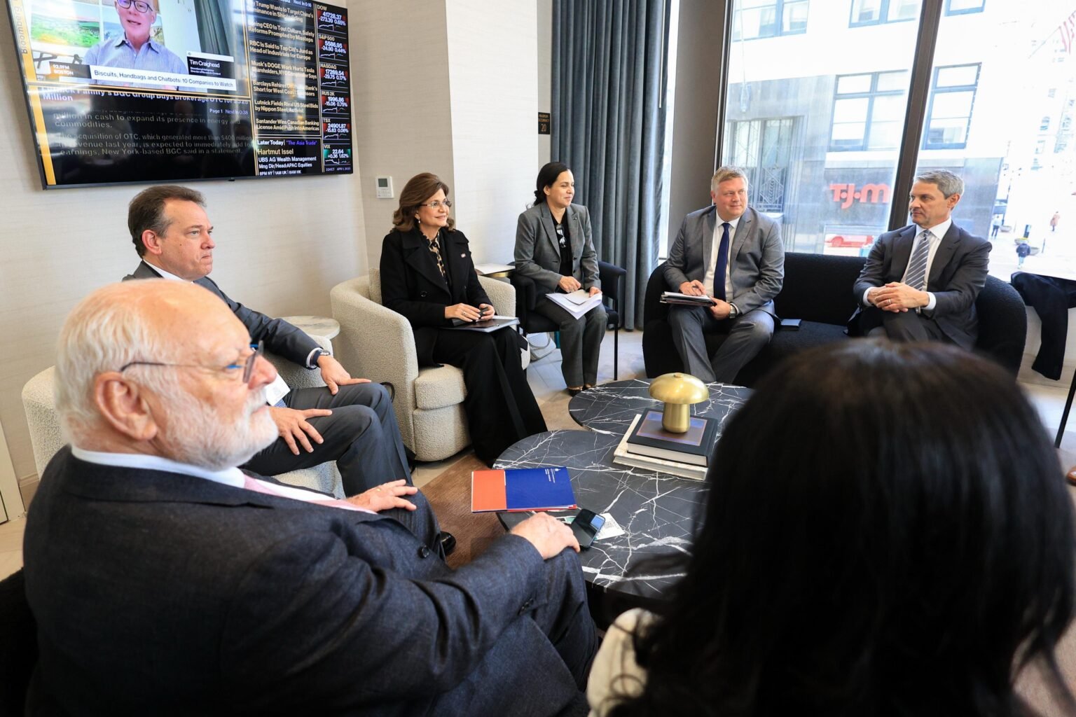 La vicepresidenta Raquel Peña estuvo acompañada del ministro del Ministerio de Industria, Comercio y Mipymes (MICM); Víctor Bisonó; la embajadora en misión especial ante la Vicepresidencia en temas de inversión y sostenibilidad, María Eugenia del Castillo; así como por los señores Samuel Conde, Felipe Herrera, Carlos Flaquer y Marino Auffant.