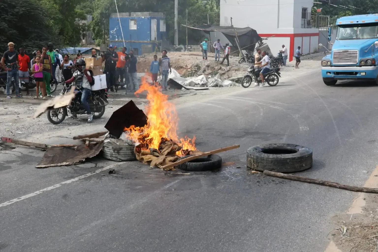 Los lugareños quemaron gomas y lanzaron basura lo que congestionó en tránsito de la zona que comunica a San Cristóbal con el Distrito Nacional.