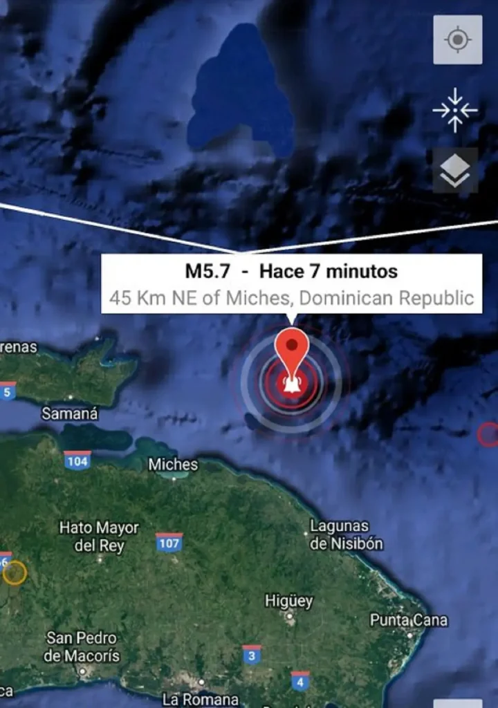 Santo Domingo, RD.- Un movimiento sísmico de magnitud 5,4 grados se registró este viernes a 45 kilómetros al noreste de Miches, en el este de República Dominicana.
