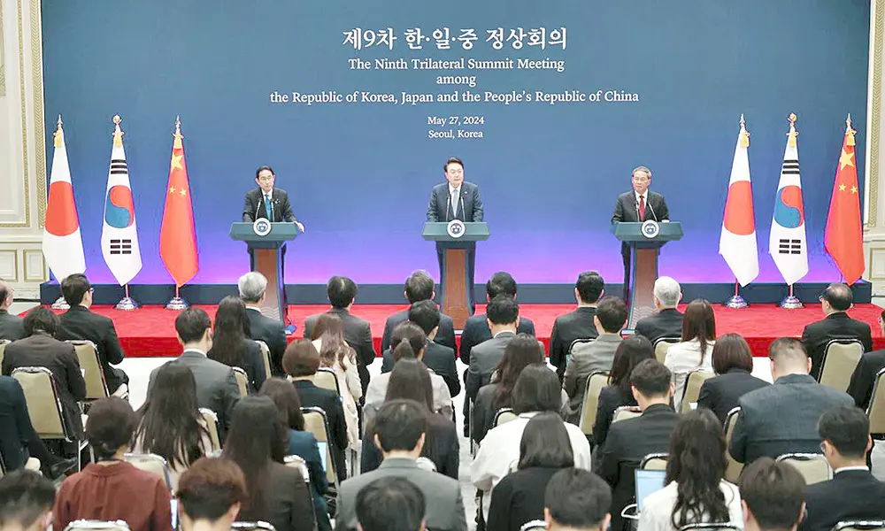 Seúl.- Corea del Sur, Japón y China expresaron su deseo de retomar sus cumbres a tres “de manera regular y sin interrupción” en un comunicado conjunto al término de la reunión trilateral celebrada entre el presidente surcoreano, Yoon Suk-yeol, y los primeros ministros de Japón y China, Fumio Kishida y Li Qiang, respectivamente.