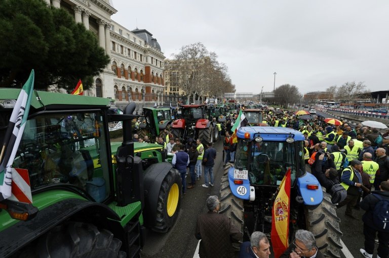 Agricultores y ganaderos llegan a la capital española durante esta mañana como continuación de las movilizaciones que se están produciendo en el país desde el pasado 6 de febrero, en línea con la estela de otras naciones europeas que han contemplado movilizaciones del campo, como Francia o Bélgica.