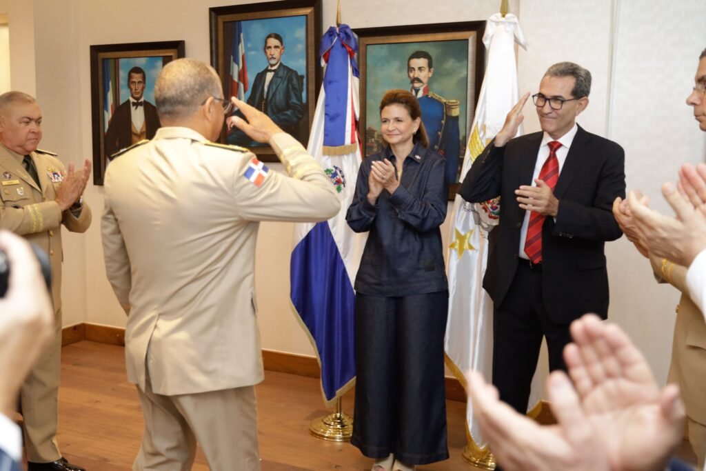 Santo Domingo, RD. – La vicepresidenta de la República Dominicana, Raquel Peña, posesionó este sábado al nuevo ministro de Defensa teniente general Carlos A. Fernández Onofre, ERD, nombrado en esas funciones por el presidente de la República Luis Rodolfo Abinader Corona, mediante el Decreto No. 445-24 en sustitución del saliente ministro de Defensa teniente general (r) Carlos Luciano Díaz Morfa, ERD, puesto en la honrosa posición de retiro por antigüedad, con 47 años en el servicio.